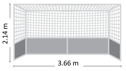 The goal-post is placed at the centre of the bottom line with a net and a backboard at the bottom to counteract the impact of the hockey stick. In some cases, the shot must not be higher than the backboard.